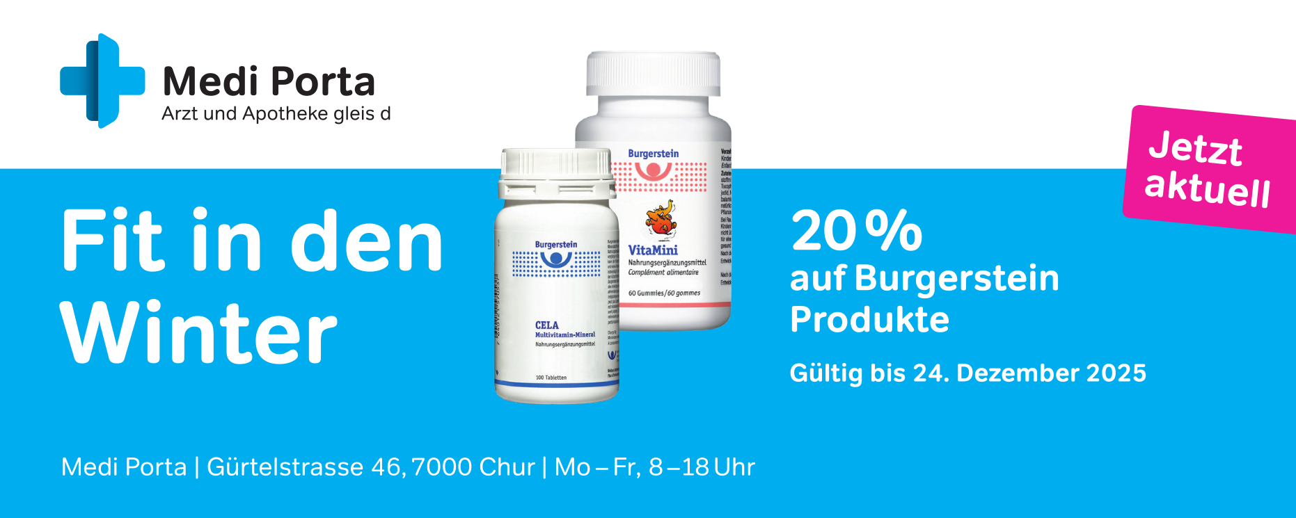 Fit in den Winter – 20% auf Burgerstein Produkte gültig bis Ende Dezember 2025 oder solange Vorrat.